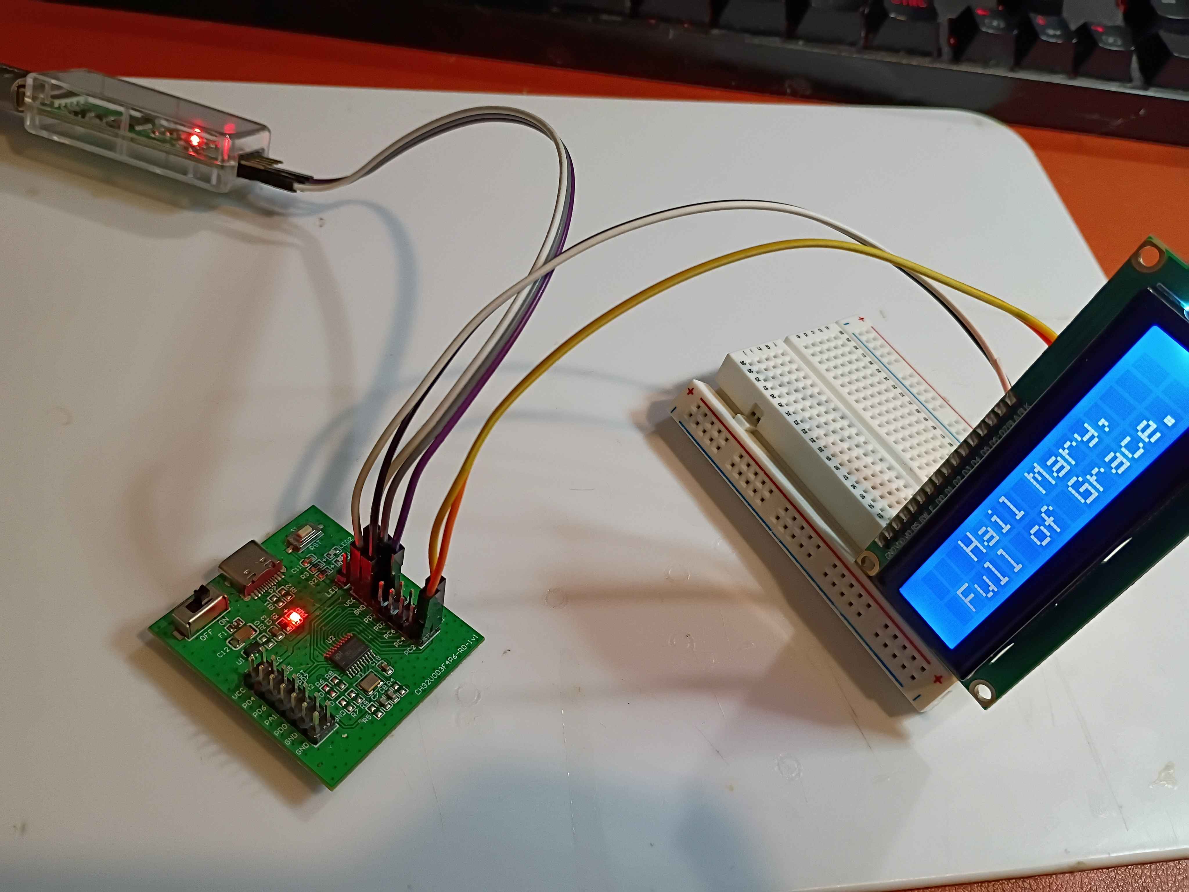 Got bit-banged I2C working on the ch32v003, which was a massive headache, around 800 bytes in the binary. Still way easier than using the built in I2C peripheral. And it allows use of any pins, which is good. Also realized that the WCH LinkE programmer can provide 5V as well as 3.3, which is very good to know. ![]()