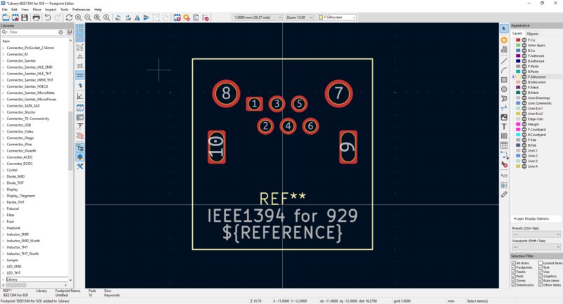 custom footprint was created for the anticipated firewire female port. Yesterday, the Schematic was updated from a reference workflow