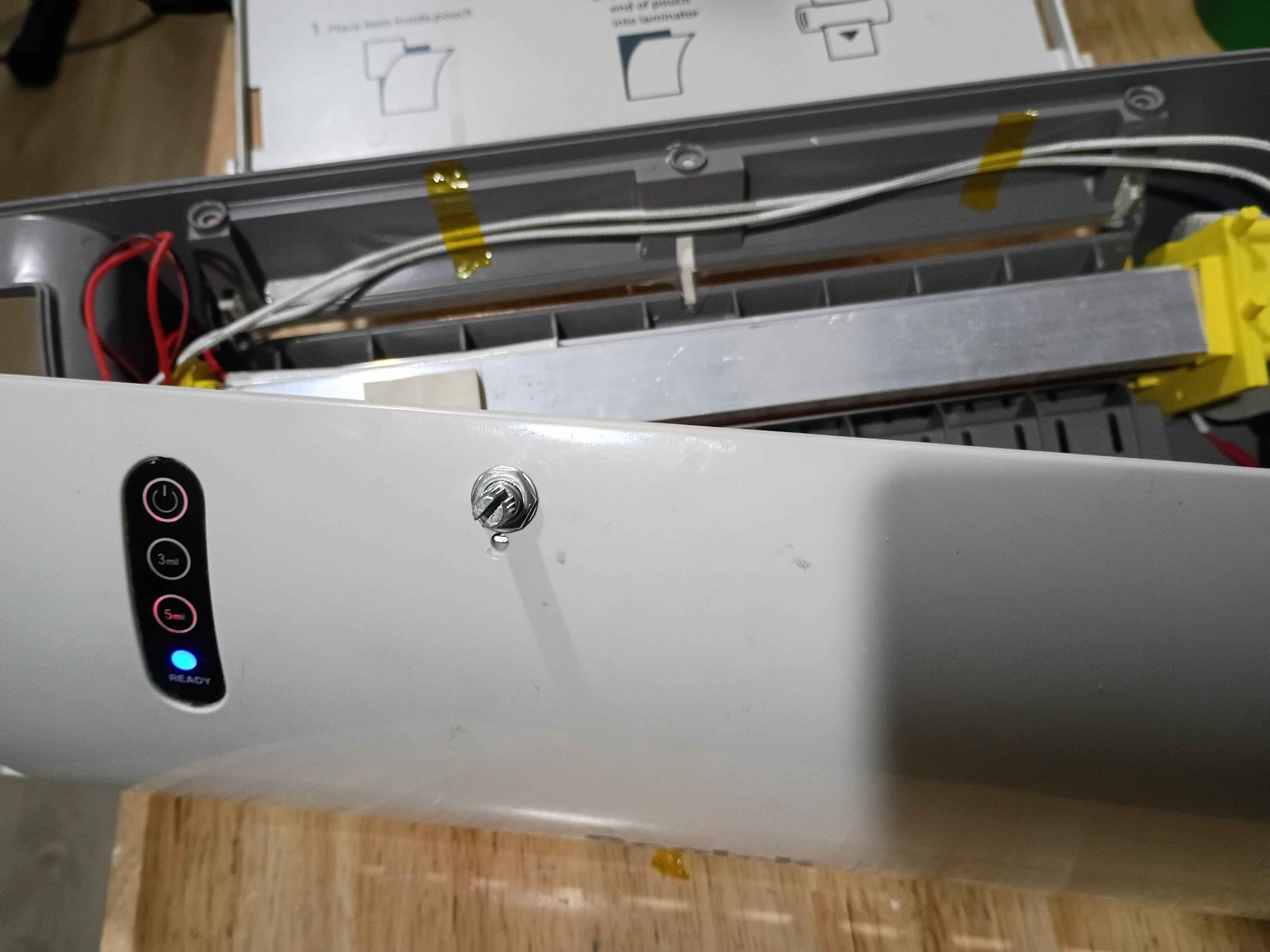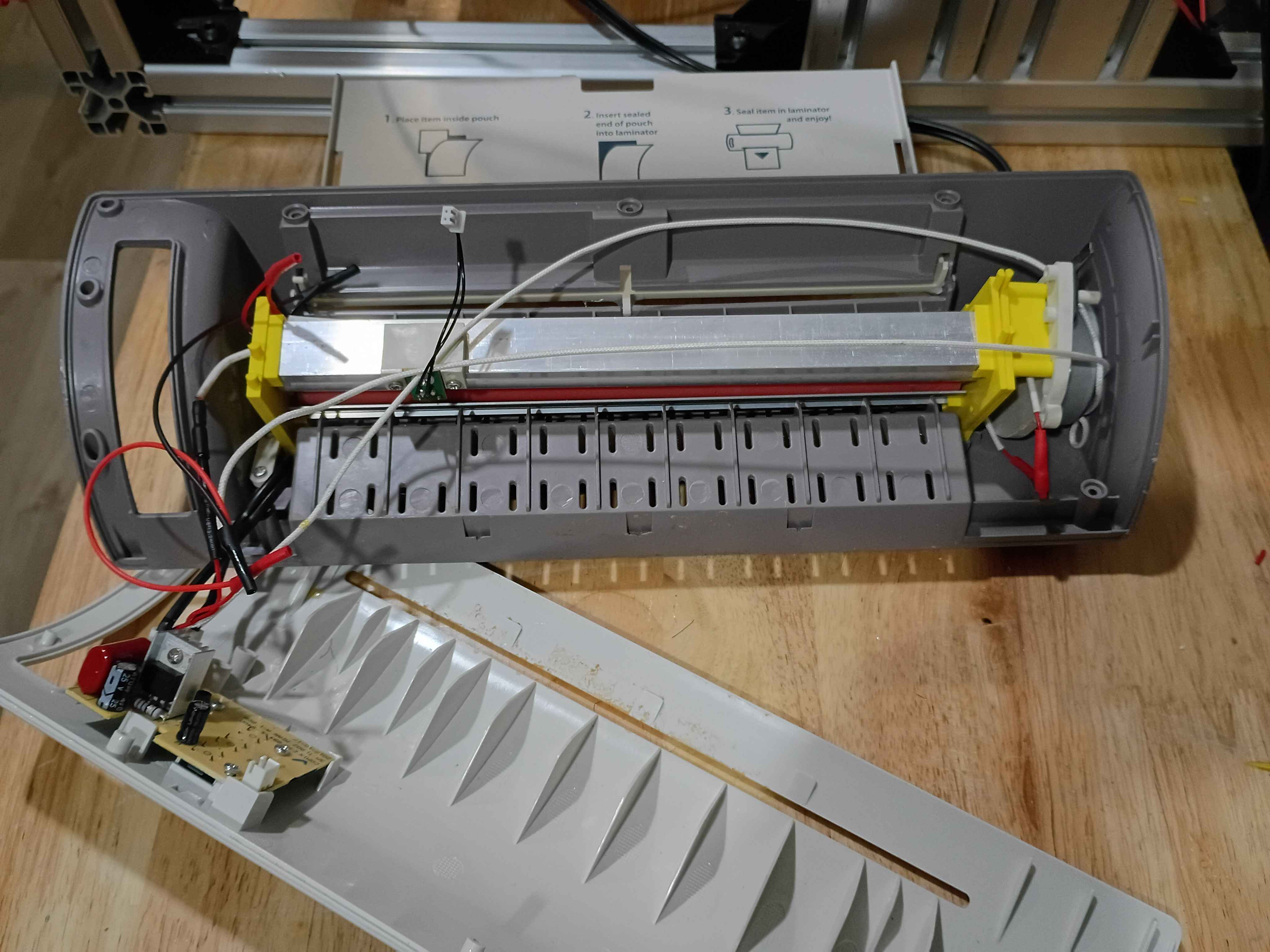 Rebuilt the laminator using the new side brackets and, although they were not perfect (in reality the lower pin on the motor side bracket needs to be adjusted slightly, though it works as is), and resoldered all the connections after threading the wires through the printed pieces. The motion system works perfectly as intended. See video of it in action. ![]()