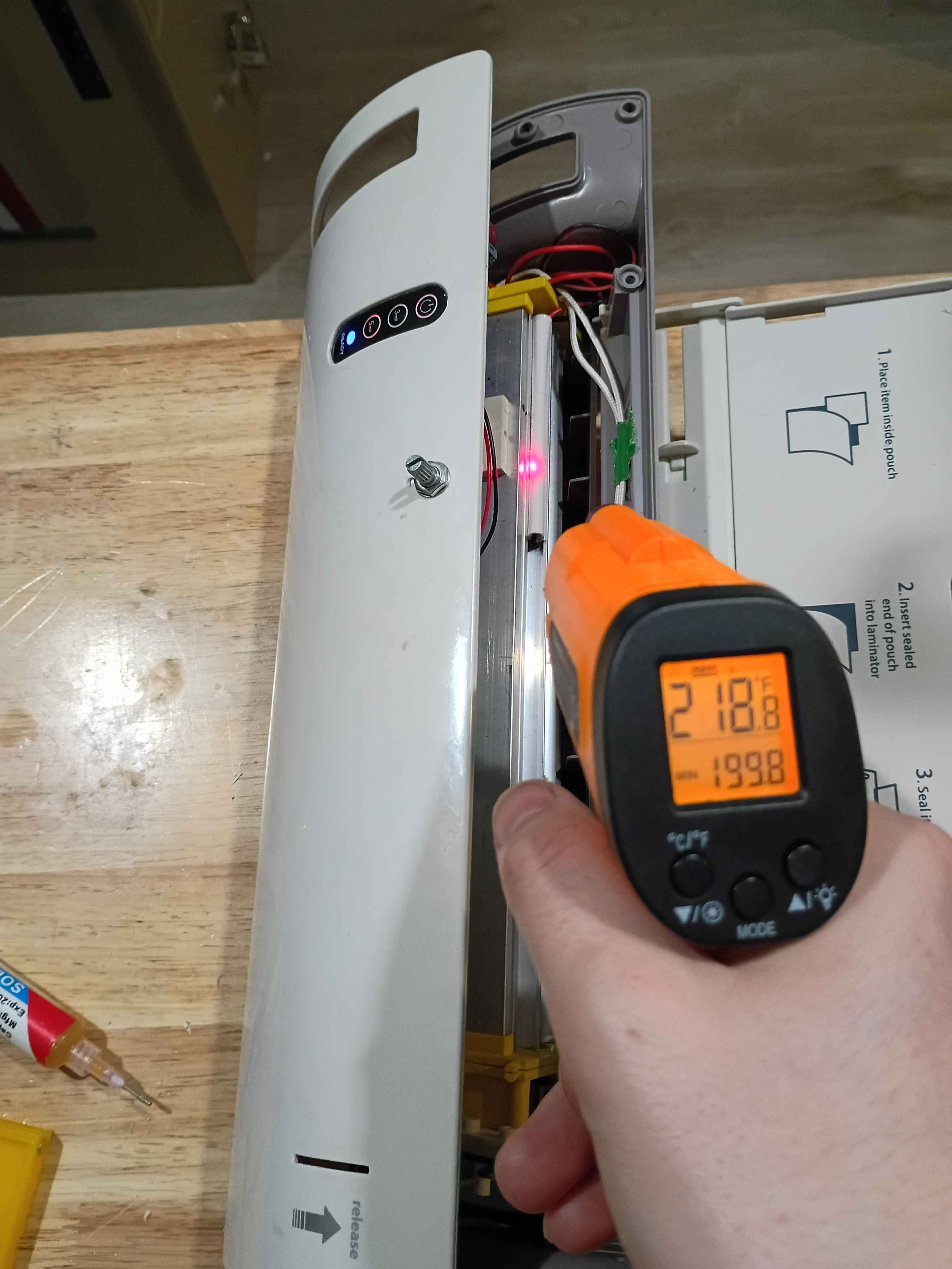 Only burned myself 15 times while soldering and assembling the final modified TL902. It does seem to work pretty well. It manages to get over 220F and the potentiometer enables you to select a different max temperature. I used polyamide tape to secure everything in place on the inside. However the side brackets are beginning to melt at those higher temperatures, so attempts will be made to cast from a high temp polyurethane resin instead. See video. ![]()