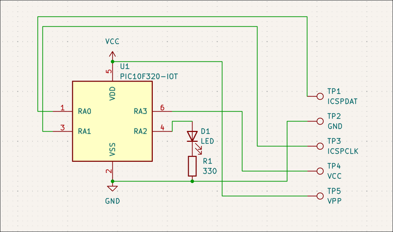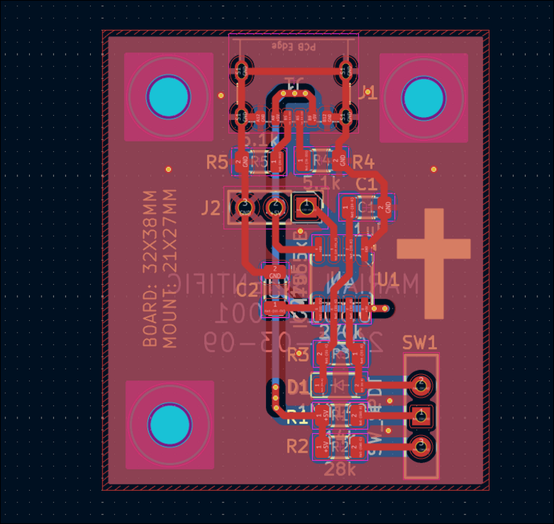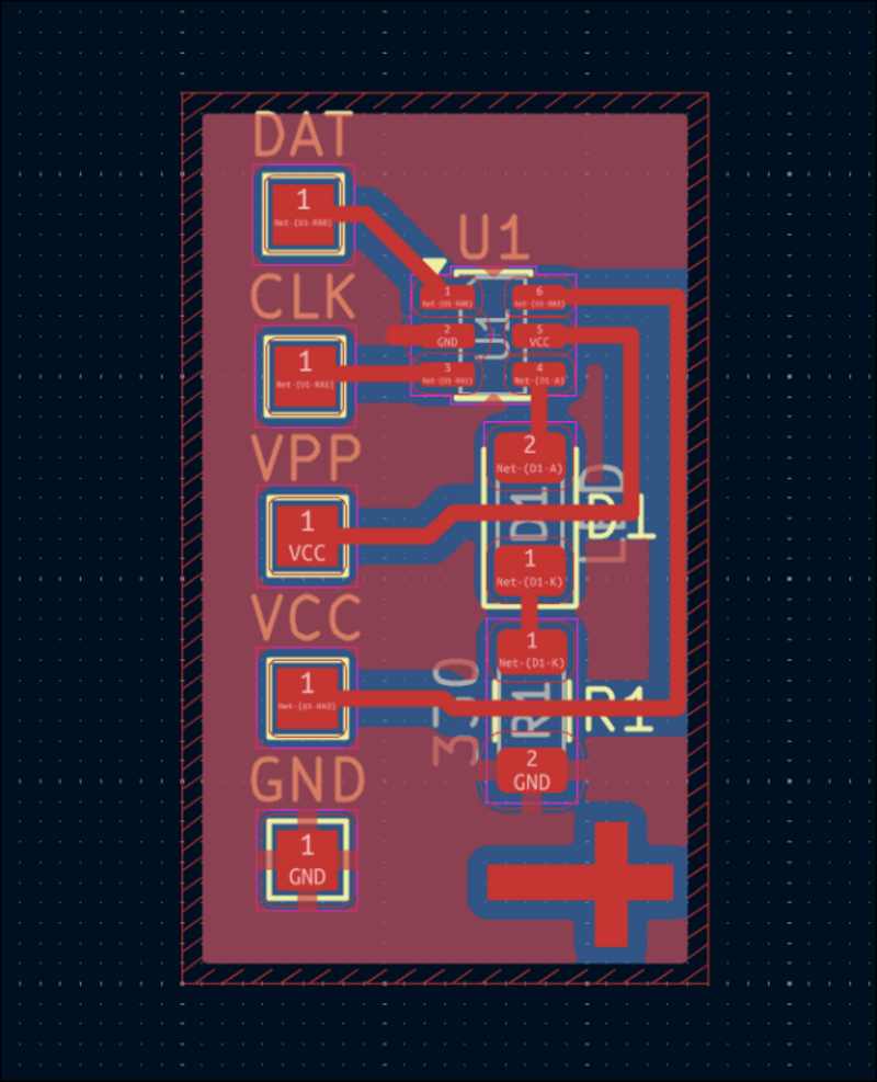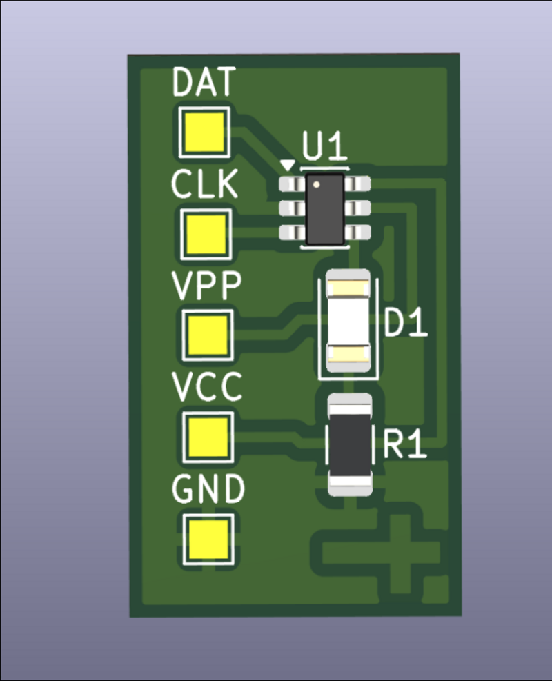 Designed (03012-003) extremely small dev board for PIC10F32* (or 20*) that will be used to test pogo pins, the software toolchain, and use of 1206 components to jump over traces (although that was not required). ![]()