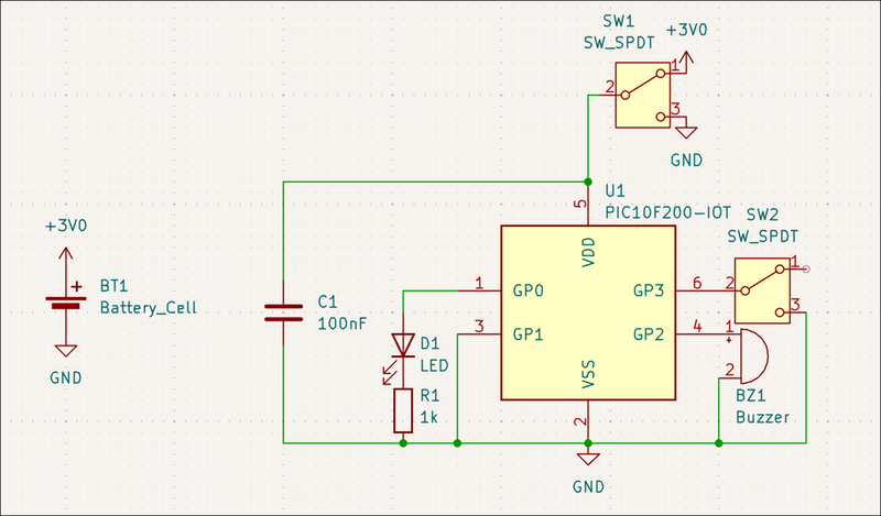 Designed 03014-001 hyper minimalist kitchen timer. Single LED output (flashes number of minutes remaining in quick succession every few seconds), single button input (one push to increment timer, long push to reset, single push to reset on alarm), buzzer, CR2032 battery. ![]()